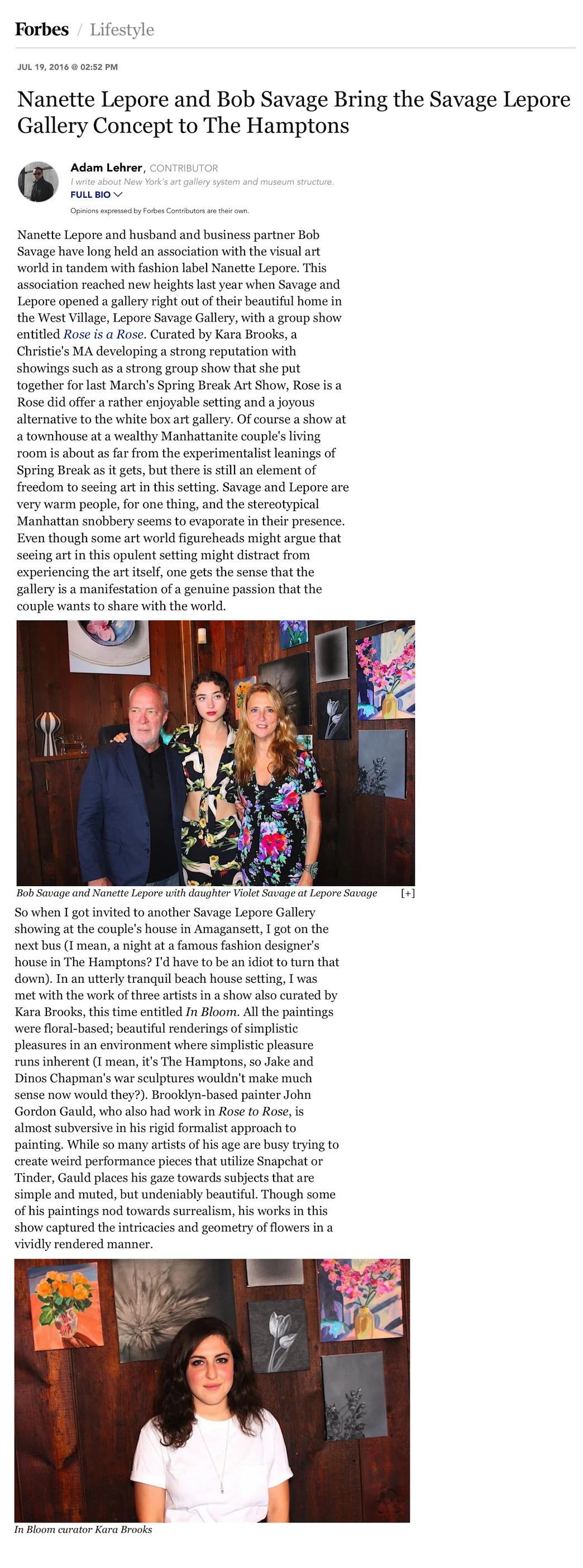 "Nanette Lepore and Bob Savage Bring the Savage Lepore Gallery Concept to The Hamptons." Forbes